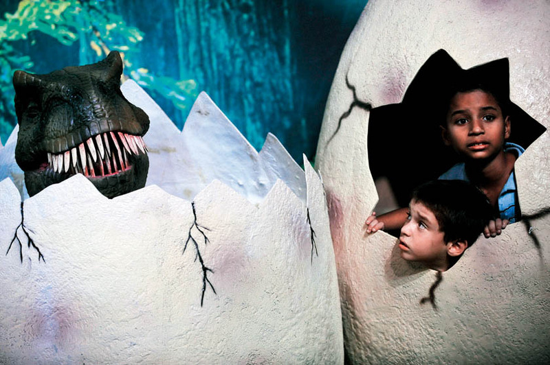8月18日,在委内瑞拉加拉加斯恐龙展上,两名小男孩从恐龙蛋复制品里探出头来。 )