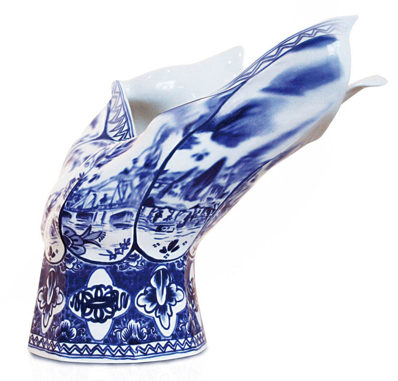 好像是被一阵强劲的风吹得变了形,Front用3D软件为传统的荷兰Delft皇家蓝瓷增加了一些奇怪的参数。“Blow Away”花瓶上面描绘的是一些典型的荷兰场景,风的动态变成它形状的一部分,其中的美感和技术挑战在于瓷器虽然被弯曲,但仍然保持了成型的样态。■ )