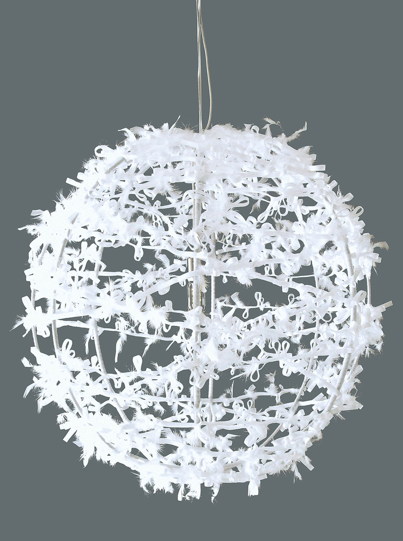 北爱尔兰设计师瑞秋·奥尼尔(Rachel O'Neill)的白色吊灯,轻盈而且具有装饰性。这是介于艺术和设计之间的产品,强调产品的视觉效果,那些复杂的花朵造型其实是用Velco尼龙搭扣完成的。■ )