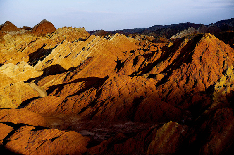 第一次去张掖的人可能要糊涂。从一条乡村小道上的牌子进入,连手机信号都没有的丹霞地貌公园,看起来是一片荒凉的山丘,跨度却在两个县之间。因此设了两个入口,门票买两次,一次给临泽县的丹霞旅游公司,一次给肃南县丹霞管理处。游客们大多只顾着和巨大的电影海报《三枪》合影,那里的红男绿女笑骂场,正是背后这一大片泛着五彩光芒的石头山。除了有一条齐整的砂石路通往4个能直面美景的高点,这里再拿不出什么像样的值得被称为“公园”的设施。电影剧组唯一留下的一间小灰屋——“麻子面馆”,还被肃南县管理处在200米外拦上条绳子。“任何人不免票,记者每天来几十个呢。”收费40元。