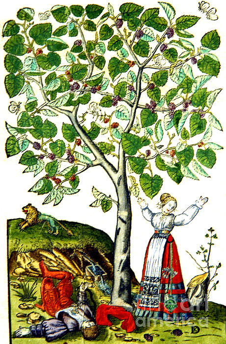 据奥维徳《变形记》记载,提斯珀和皮拉姆斯是生活在巴比伦城的一对恋人,因为父母禁止他们见面,而相约某一个晚上到古亚述王亚努斯的墓前互吐相思。提斯珀是一位独立勇敢的女汉子,从不会无故爽约或迟到,她按时到达约会地点,看到一只狮子正在附近转圈,嘴边似乎还滴着猎物的鲜血,她于是吓跑了。皮拉姆斯非常不可思议地姗姗来迟,也看到这只狮子,愚蠢地以为提斯珀已葬身狮口,于是鲁莽地用剑结束自己的生命。惊魂未定的提斯珀返回古墓,看到恋人的尸体,虽然也许并不明白个中缘由,但还是过于勇敢地随他而去。这对恋人的鲜血染红了附近的桑葚,从此这种树的果实变成深紫色。如果细心的话,我们会发现,这其实是《罗密欧与朱丽叶》的滑稽版本。