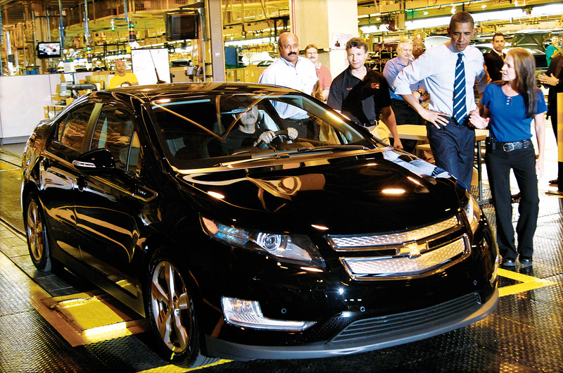 ( 7月30日,美国总统奥巴马访问通用汽车装配厂,并试驾了一辆雪佛兰Volt电动车 )