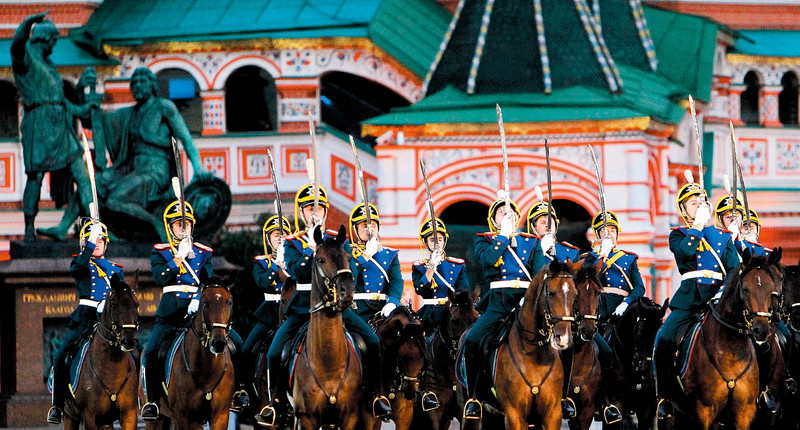9月4日,第二届俄罗斯国际军乐节在莫斯科红场开幕。来自俄罗斯、美国、英国、哈萨克斯坦等9个国家的军乐团及演员参加了开幕式演出。 )
