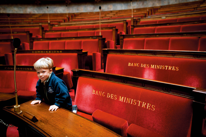 第27届法国“遗产日”于18日、19日两天举行。在法国首都巴黎,包括巴黎歌剧院、国民议会、参议院、总统府、总理府等在内的多处纪念性建筑免费向游人开放。图为9月18日,一个小男孩在议会大厅的长椅上玩耍。 )