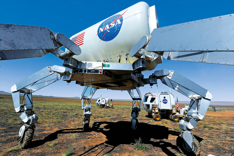 9月15日,美国航空航天局在亚利桑那州的沙漠中测试新型行星探测车。该车设有太空服港,宇航员能通过它爬进太空服内,10分钟就可以走出飞行器外,从而大大降低太空行走的准备时间。 )