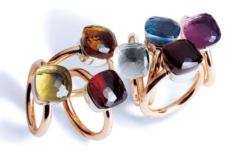 米兰珠宝品牌Pomellato(波米雷特)的新款NUDO系列戒指,玫瑰金、白金混合的戒身镶嵌柠檬晶、橄榄石、白色和蓝色托帕石等宝石。依靠独创的切磨刻面工艺,戒指的设计实现了“裸露”的概念,让宝石看上去好像未经雕琢一般,自然地浮现出来。■ )