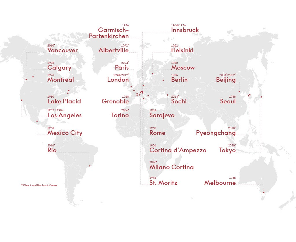 1936年,欧米茄首次担任冬奥会正式计时,由一名制表师携带27枚计时码表,为加米施-帕腾基兴 (Garmisch-Partenkirchen) 冬奥会记录每个精彩时刻,出色地完成了计时任务。欧米茄与奥运会的渊源最早始于1932年洛杉矶夏季奥运会,当时奥组委首次委任一个品牌担任奥运会正式计时,欧米茄凭借出色的制表实力获此殊荣。