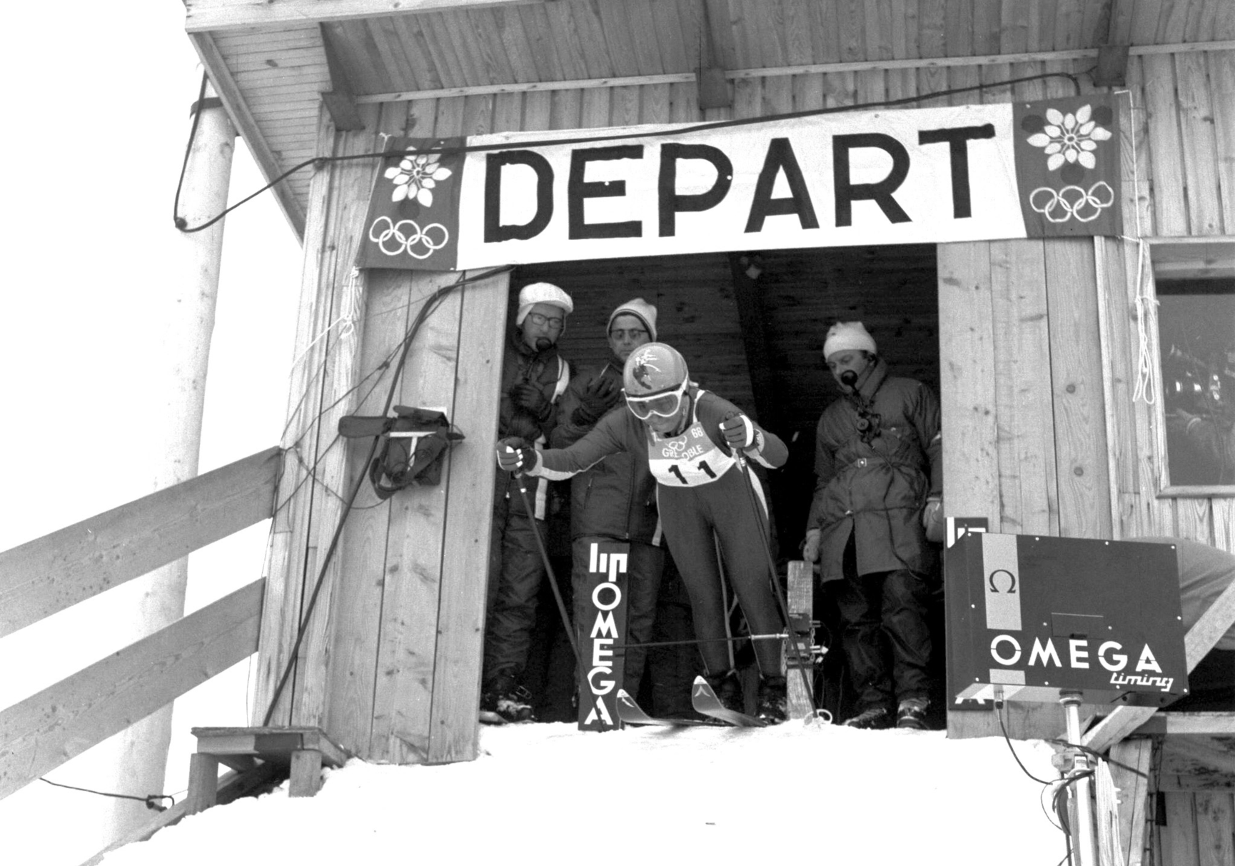 1980年普莱西德湖 (Lake Placid) 冬奥会上,欧米茄为高山滑雪比赛推出了Game-O-Matic技术。该设备在运动员冲过终点线的瞬间,可以立即计算成绩并显示排名。它配备了专用的数据处理设备,完全满足了当年普莱西德湖组委会的期待。