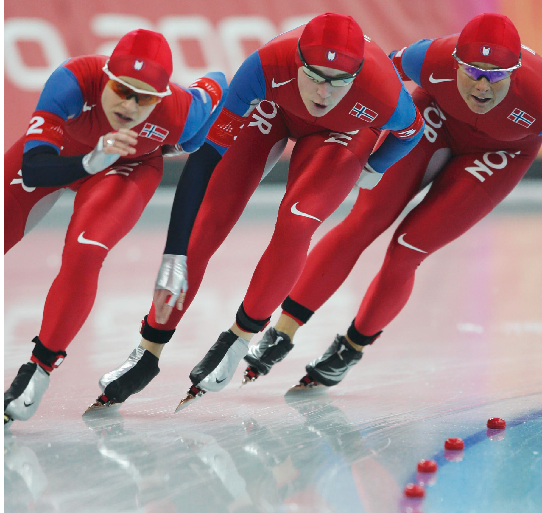 2006年都灵 (Turin) 冬奥会上,欧米茄首次为运动员引入专用的可穿戴式计时装置,主要用于速度滑冰团体追逐赛项目,佩戴在运动员脚踝处,能够发送和接收无线电信号,可以及时采集确切的测量数据。
