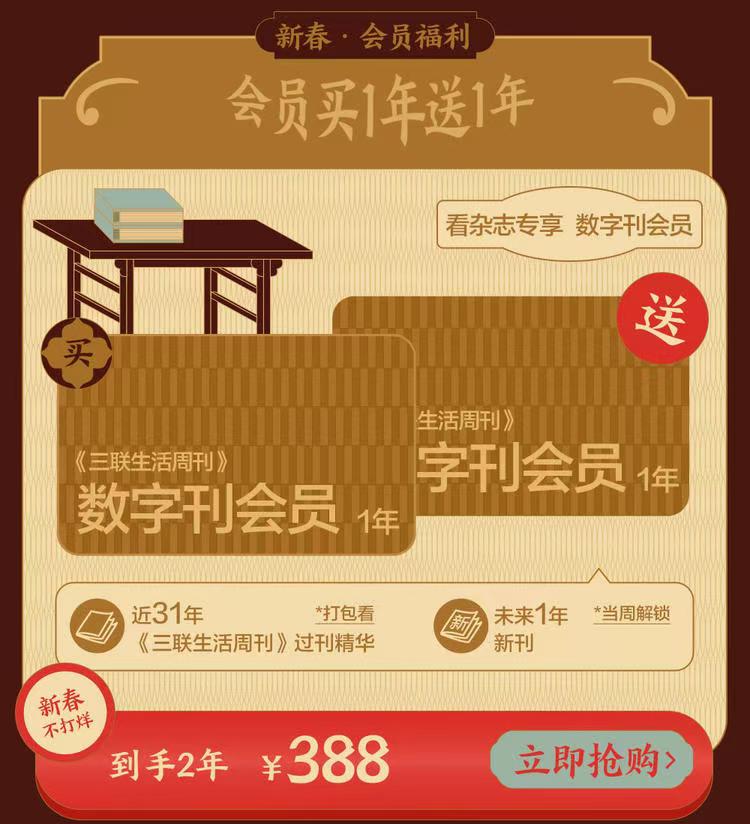《三联生活周刊》数字刊“买一年送一年”