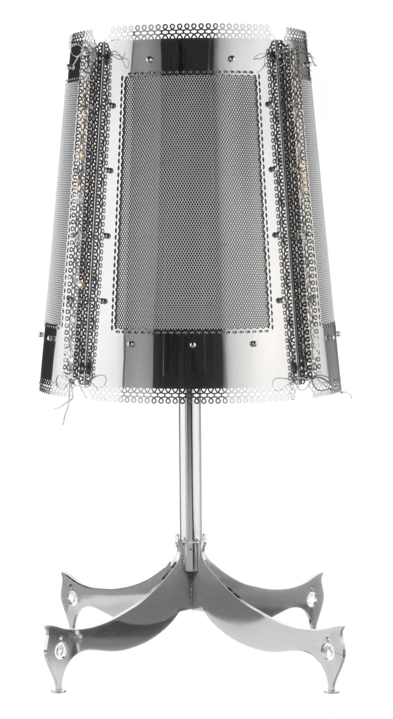 就像女人的紧身胸衣一样,Brand van Egmond的萝拉(Lola)台灯透过蕾丝的遮挡进入隐秘的幻想。灯罩采用在双层遮光处理,激光切割的高光泽金属层背后,隐藏了内在的柔软蕾丝,两者由绸带细密地捆绑在一起。■ )