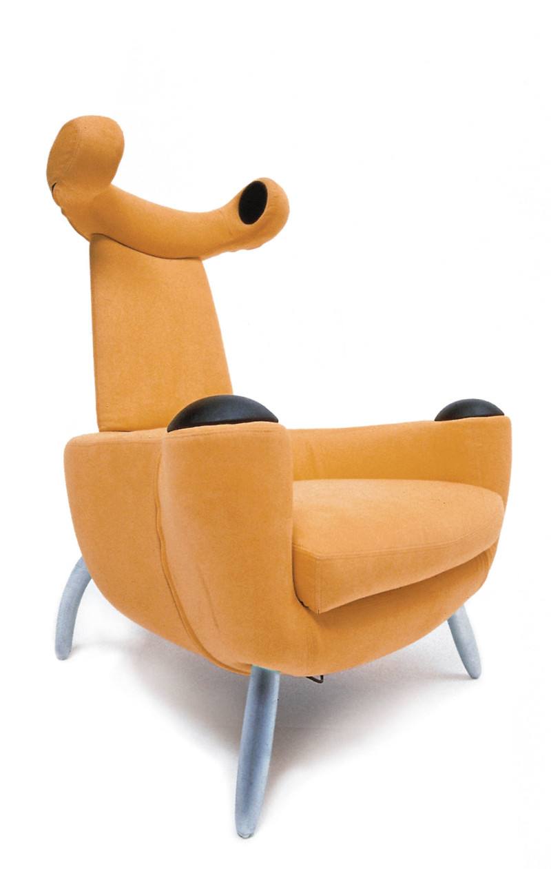 这把名为“歌唱”(Song)的座椅很奇怪地把自己和新型Hi-Fi音响系统结合在一起,头枕部分配备了一个立体声放大器和两个微型扬声器,整个设备可以连接到光碟播放器或者立体声电视系统。还有两个声音振动装置被安置在软垫扶手处,当声音响起的时候,可以随之发生振动。■ )