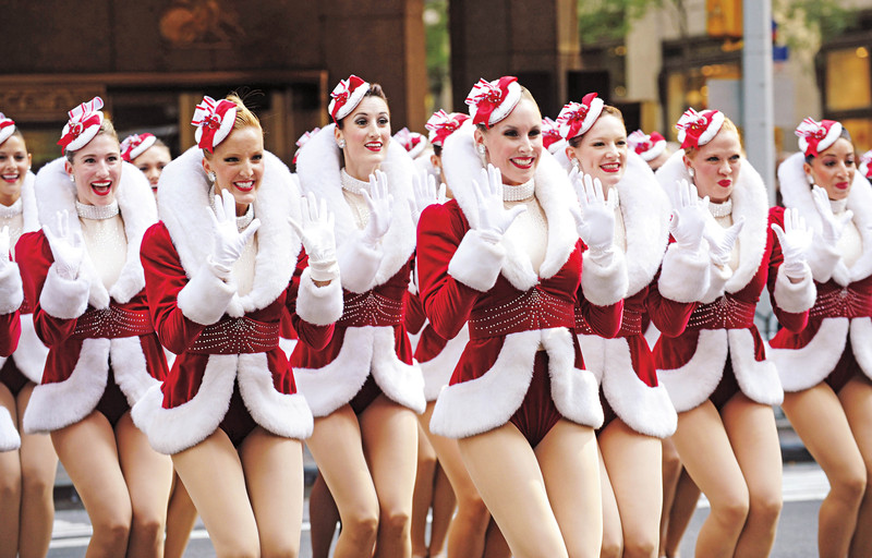 8月25日,在纽约第六大道无线电城音乐厅门前,火箭女郎舞蹈团为2009年的圣诞大会演举行隆重的造势活动。每年“无线电城圣诞奇观”歌舞秀于圣诞节期间在这里演出,是纽约人过圣诞节的一项不可错过的节目。■ )