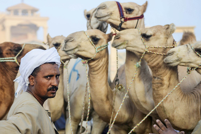 (左页下图) 8月28日,古尔邦节(又称宰牲节)即将到来,埃及吉萨的牲口贩子在牲口市场等待买家。古尔邦节与开斋节(肉孜节)、圣纪并列为伊斯兰教三大宗教节日。各地穆斯林于节日前3天须备好待宰牲灵(羊、牛、骆驼),大户用驼,中户用牛,小户用羊,无力宰牲者免除。羊为1人1只,牛为7人1头,驼等同于牛。不管哪种牲灵,均须健康强壮,外观美丽。宰牲所得的肉要分成三份,分别留作自用、赠送亲友以及施舍给穷人。
