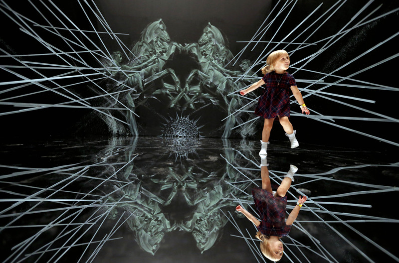 第二届街头艺术双年展“Artmossphere”从2016年8月30日到2017年1月10日在莫斯科举办,展示世界街头艺术作品。图为8月30日,一名小女孩儿在马涅什中央展览厅参观第二届Artmossphere街头艺术双年展。