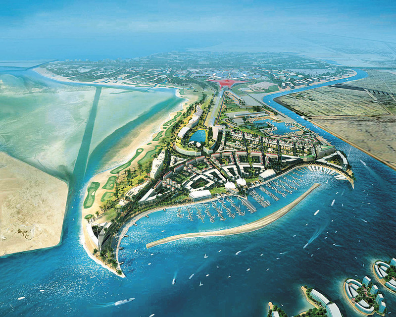 ( 建设中的迪拜萨迪亚特岛和亚斯岛鸟瞰效果图