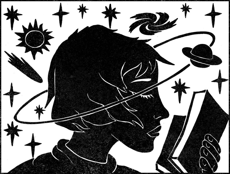 认识她在一个雨天,小雨转中雨以后,街上的狗也躲进屋檐尽里的地面。时间还早,但是天已经黑了,何况气温有些阴冷。我站在台阶下面,一边撑伞一边打量着她。椒盐伏在放着收款机、带两个小抽屉的桌前,没什么表情地读一本书。我推门进去时,她欠起身子点了点头,好看地朝我一笑。我回应了一个微笑。下雨天让书店变得更小,从门缝里偷闯进来的水分弥漫在书籍之间,空气里摇动着《时光流逝》低缓的过渡音节。我站住了等待旋律的时间里,椒盐再次仰起了头,问我是不是要找什么书或电影。我摇摇头,笑着指了指空中的音符。“听过这首音乐。”我说。