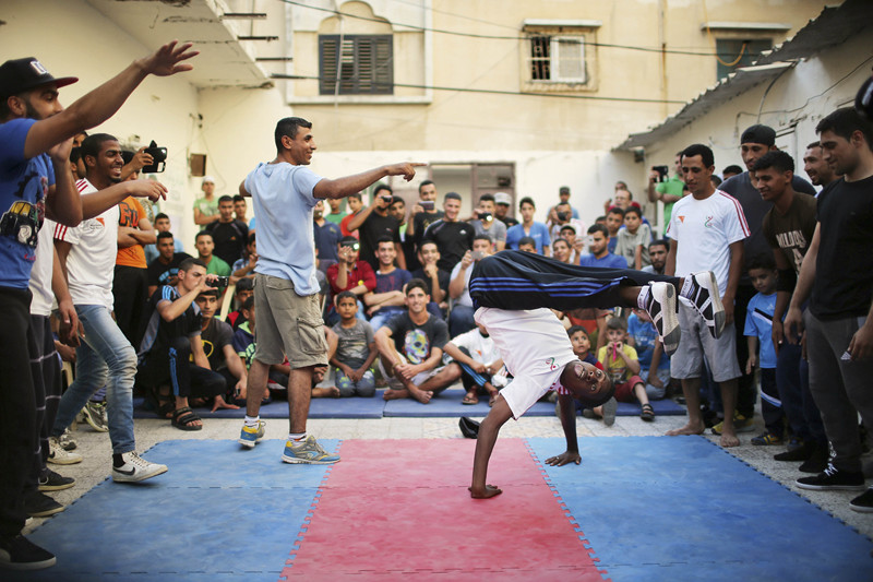 巴勒斯坦 | 街舞团 6月12日,加沙街舞团的队员在他们的训练基地为当地的孩子和年轻人表演。加沙街舞团成立于2004年,在加沙一个难民营中有自己的训练基地。