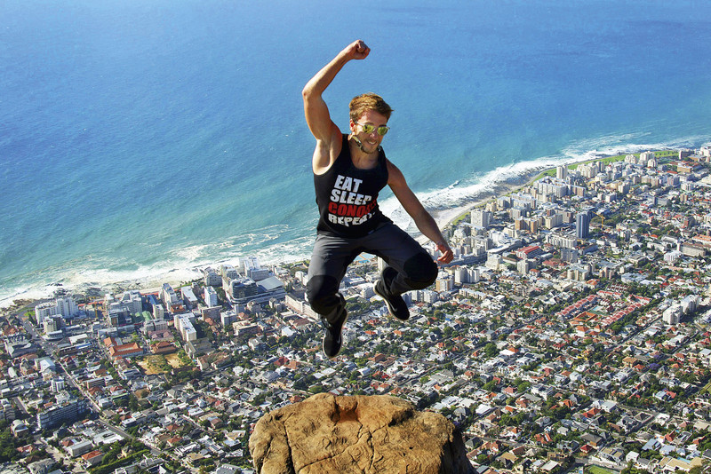 南非 | 超胆侠 一位来自意大利的“超胆侠”在南非开普敦的狮头峰纵情跳跃。狮头峰离地面足足有600米,是埃菲尔铁塔高度的两倍多。