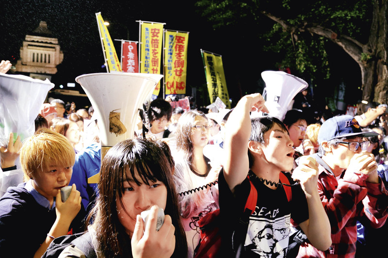 9月17日,数百名日本民众在东京街头举行集会,抗议新安保法案