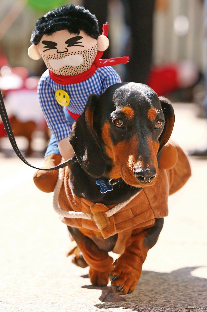 澳大利亚 | 腊肠犬比赛 9月19日,墨尔本啤酒节上,一只迷你腊肠犬在参加腊肠犬跑步比赛。