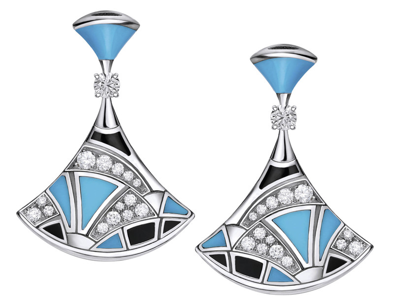 宝格丽DIVA系列珠宝 采用标志性的弧线设计,其风格深深植根于繁华奢侈罗马时代艺术审美,采用色泽绚丽多变的材料,从闪亮的绿松石、青金石或珊瑚石到深色玛瑙与灵动的珍珠母贝,密镶钻石缠绕其间,同时适合于日常佩戴与晚宴正装场合。