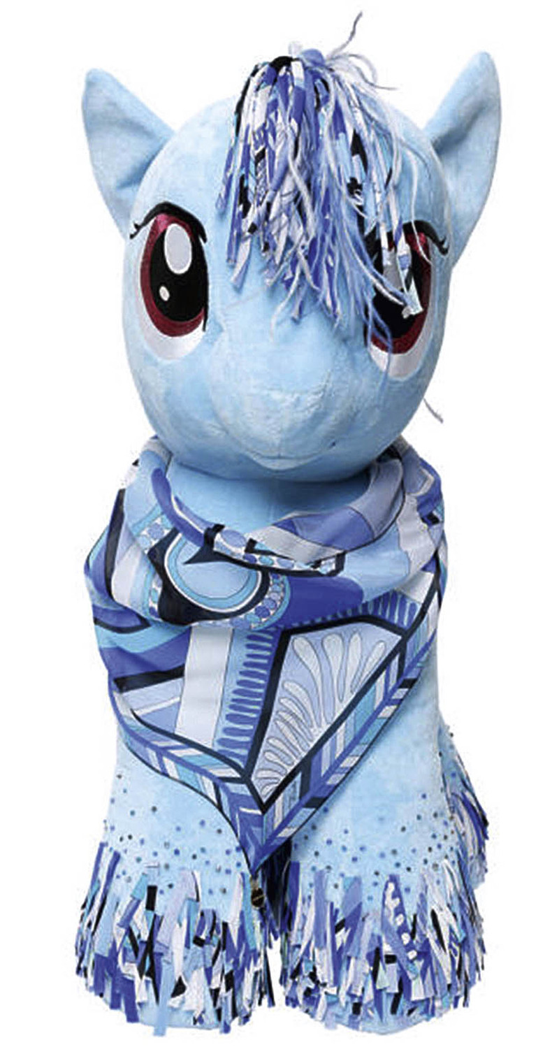 我的小马驹 意大利奢侈品零售商Luisa Via Roma与美国孩之宝(Hasbro)玩具公司合作,推出“我的小马驹”时装设计项目,为“救助儿童”慈善组织筹集资金。巴尔曼、芬迪、米索尼、里克·欧文斯、罗伯特·卡瓦利、高田贤三和范思哲等众多时装品牌加入其中,对这件标志性的玩具进行高级时装改造,并在易趣上拍卖这些小马驹。