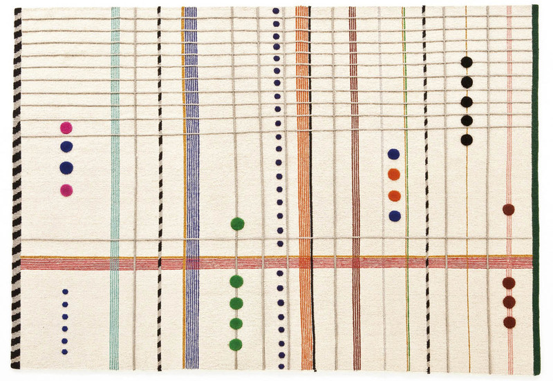 手工刺绣 多希·莱维恩设计的Rabari系列地毯,采用新西兰纯羊毛,鲜艳的色泽结合富有节奏感的平面图形设计。地毯制作源自印度的手工刺绣和编织技术,由印度卡奇地区Rabari部落的妇女完成。