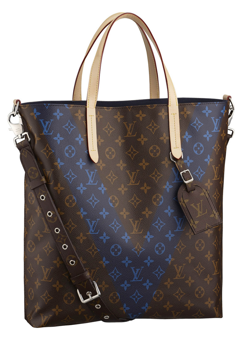 路易威登“MONOGRAM V”男士皮具系列 将蓝色的“V”以丝网印刷的技术呈现于Monogram印花之上,主打款N/S Tote大手袋有三种不同的佩戴方式:手提、斜挎、肩背,内部更是有专门为iPad以及数码产品收纳设计的内袋。可拆卸式的肩带与装饰行李牌皆使用Monogram帆布。
