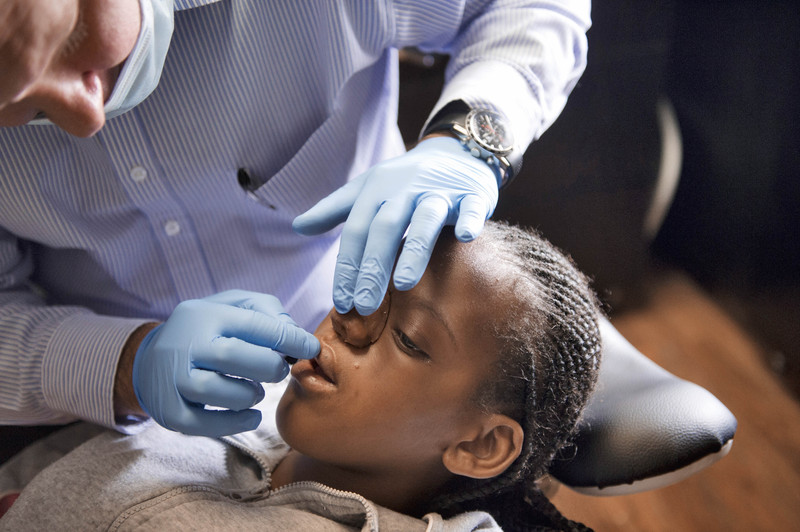 南非 | 人工鼻子1月19日,南非行政首都比勒陀利亚一家医院的医生在给一名天生没有鼻腔的女孩安装人工鼻子。