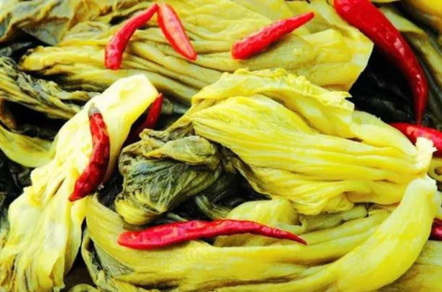 过不久,腌菜缸里的水面有一层发白的膜状的东西,缸里散发出微微的酸味,腌菜就基本腌好了,可以出缸。刚出缸的腌菜黄溜溜的,味道又酸又脆。小孩子常常手里抓一个腌菜头,用牙一丝丝地扯着吃,像是在吃一个鸡腿。大人腌酸菜的时候也是想到小孩爱吃,方便用手抓,才把叶柄大的一头切成四五寸长完整的。