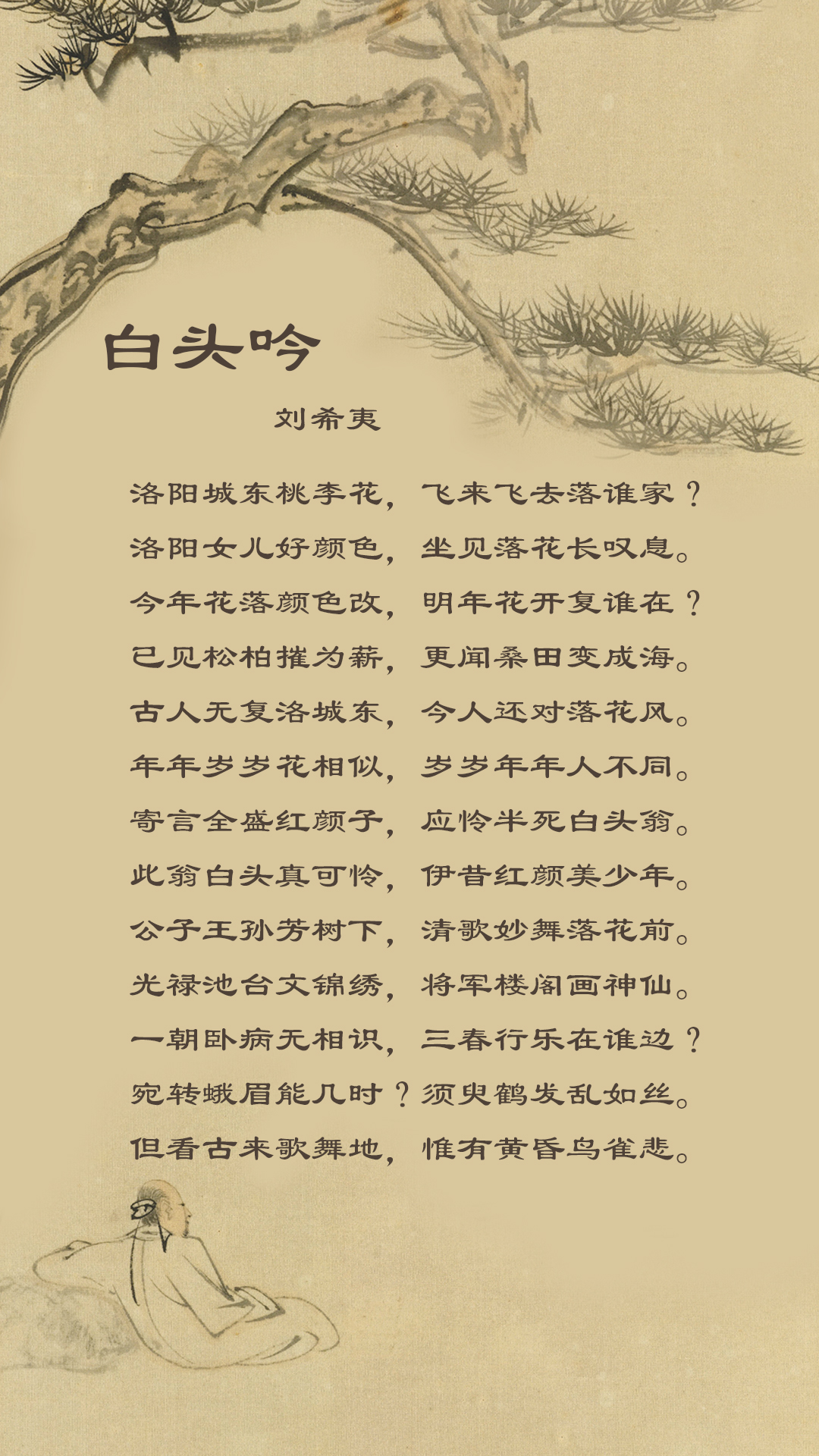 刘希夷的《白头吟》(又名《代悲白头翁》)提出了一个更加宏大的命题,它和世上每个人都必须面对的“离丧”有关,直指人类的整体命运。