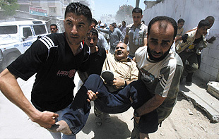 ( 6月13日,法塔赫与哈马斯在加沙地带交火,两位居民帮助受伤者逃离现场 )