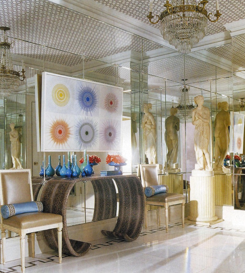 特雷西·华纳在纽约上东区的家像打开的糖果盒,五彩斑斓,主要颜色是粉色。一个不算年轻的女人扮小甜甜,顶多穿件粉色衣服,少有如此铺张地在家里使用粉色系的。还好,她找到了擅长运用色彩的著名室内设计师菲利普·格里万(Philip Gorrivan)。