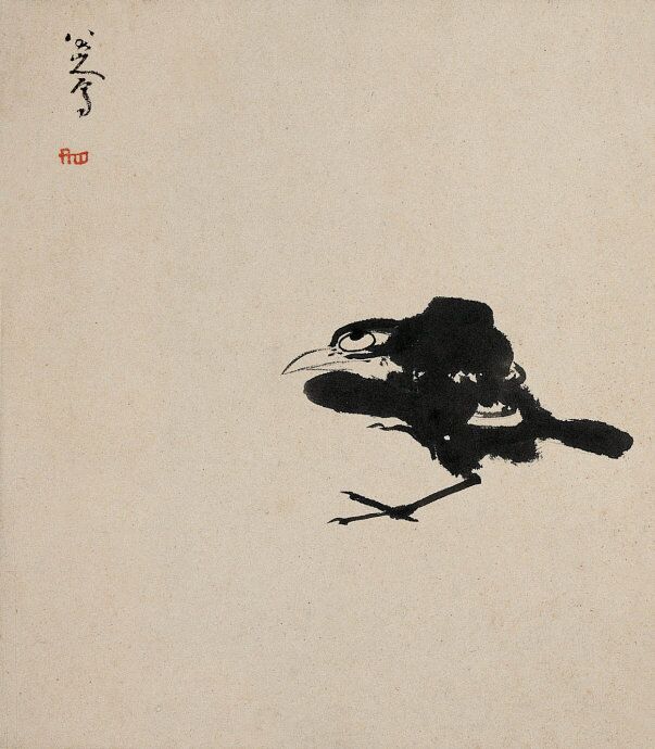 朱耷是明朝宁献王朱权的九世孙,国破家亡后,心情悲愤,曾落发为僧。只是他从来没有脱离红尘,因见皇族被戕,人丁寥落,遂在晚年念及“不孝有三,无后为大”而还俗娶妻生子。这首诗是他的题画诗,透过此诗,可以一瞻他的惨淡、荒凉心境。