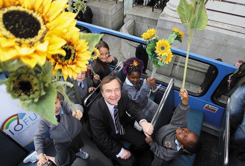 ( 爱尔兰都柏林小学生乘坐以生物柴油驱动的旅游巴士 )