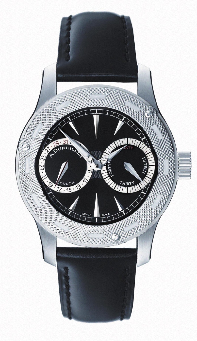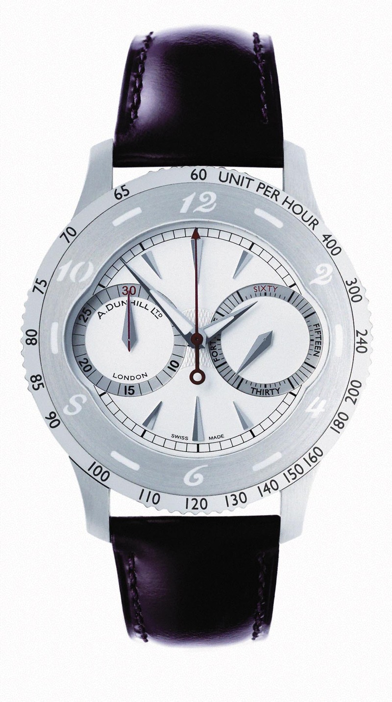 Bobby在英国俚语里是警察的意思,当年登喜路的创办人阿尔弗雷德·邓希尔(Alfred Dunhill)因为超速被警察拦查,所以设计出一款既可防尘又具有望远功能的汽车眼镜Bobby Finder,相当于现在的超速照相警报器。现在这款Bobby Finder SP20/30腕表的表面上双筒望远镜式的计时码表与测速功能,就有过去“发现警察”眼镜的影子,像道路分隔线的数字表框也在呼应着警察故事。SP30的另一有趣之处是它的可旋转表框里面还藏有陶瓷按钮,旋转表框就可以启动双计时码表按钮,再转动时按钮就会被收回表壳内。■ )