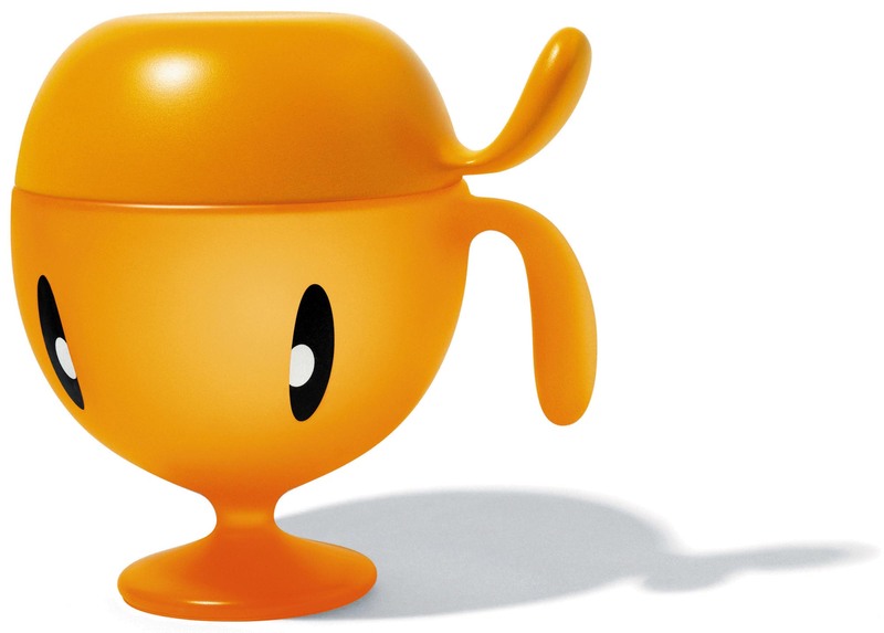鲁迪(Rudi)是给小孩用的PMMA塑料杯子,也可以是一个小碗或者小容器,当然是意大利梦工厂Alessi的出品。女设计师蜜瑞安·米里(Miriam Mirri)将它设计得非常亲切好玩,杯体上细长的眼睛和旁边上翻下翘的把手,它摘下帽子是一个杯子,戴上帽子就变成了小罐子,3种不同的色彩组合的搭配也很有趣。■ )