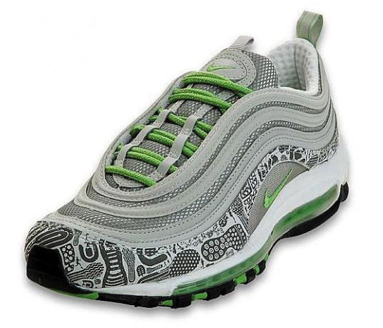 当球鞋被气垫和芯片等技术卖点批量武装后,将历史上经典的运动鞋款式再版,成为耐克每年都在进行的复古尝试。90年代耐克设计的Air Max被彻底复刻,颜色一律以绿色做基础,包括Air Max90款、Air Max97款,以及Air Max360返老还童。159.99、139.99和99.99美元,复古鞋又一次标注上了款式越古老价格越昂贵的定价法则。■ )