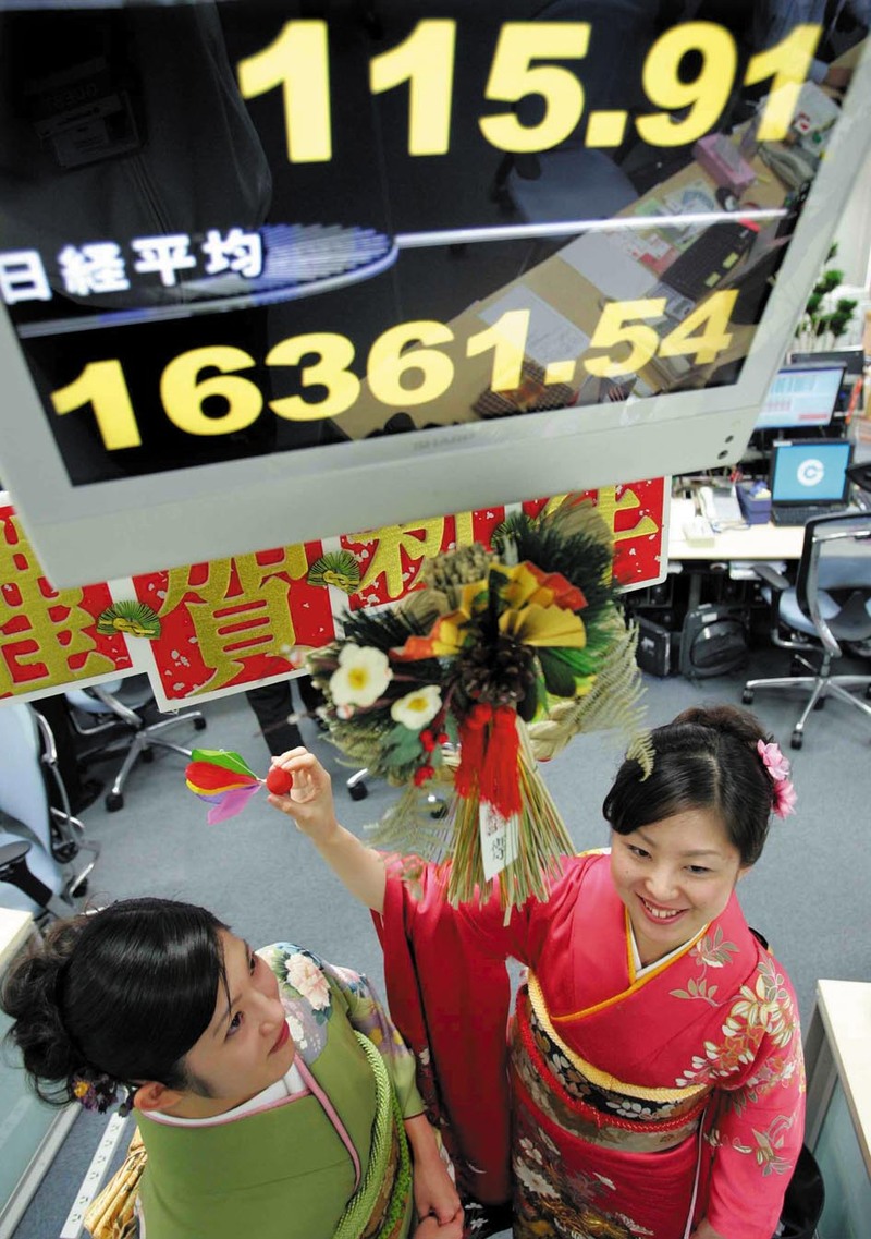 ( 2006年1月4日,位于日本桥区的东京证券交易所举行了盛大的庆典仪式,以此来标志2006年交易的开始,在半个交易日内,股指持续走高 )
