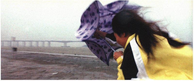 9月2日19时许,广州市南沙虎大桥旁的江边,一女子顶着风艰难地移动。据估计,此时风力已达8级