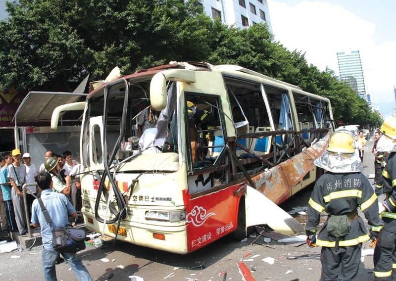 ( 被炸毁的车厢内一片狼藉