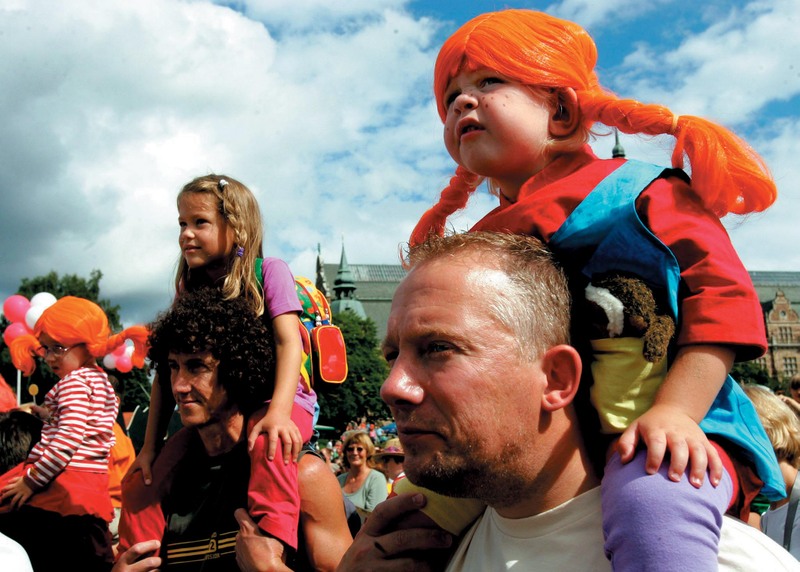 为庆祝童话人物“长袜子皮皮”诞生60周年,8月13日,3000多名长袜子皮皮迷在斯德哥尔摩举行了盛大的化装游行。许多人打扮成皮皮的经典造型:两根橙红的辫子以及一长一短不成对的袜子。本来9月13日才是长袜子皮皮真正的生日,但因为瑞典夏天太短,这一庆典提前一个月举行。■ )