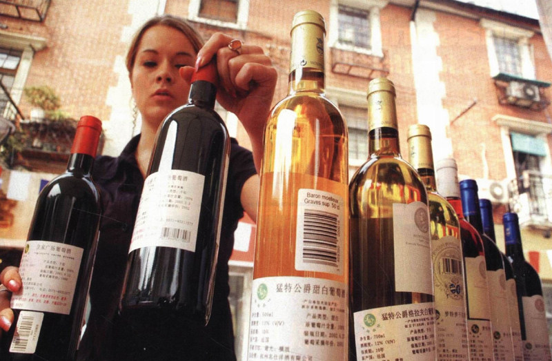 2004年10月11日,法国小姐在“上海法国周”展示法国葡萄酒