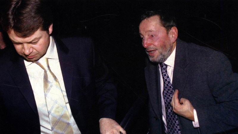 2004年12月15日,布伦基特(右)离开内政部办公室,此时他已辞去部长职务