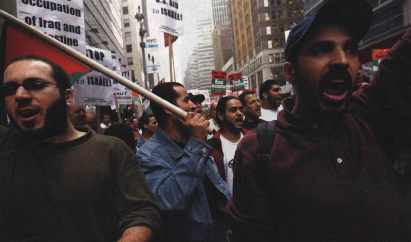 2004年5月14日,美国纽约,时代广场举行祈祷集会活动,抗议伊拉克战争及以色列对巴政策