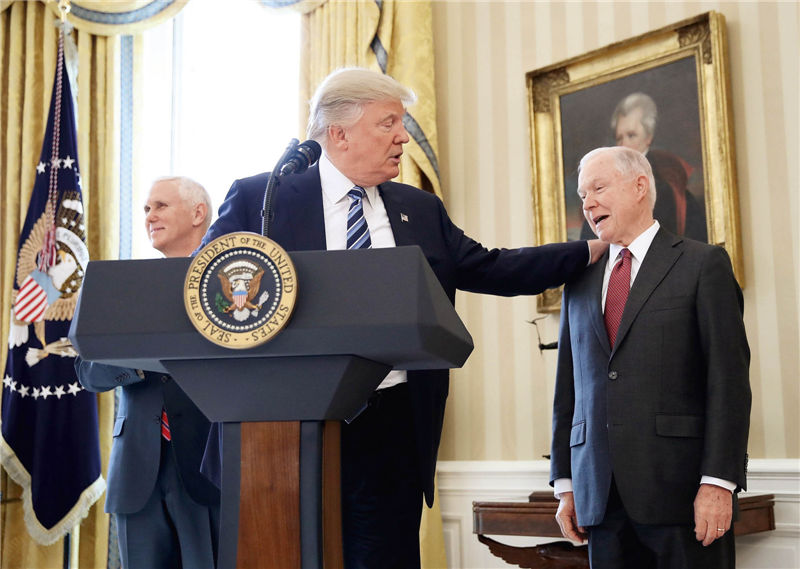 但仅仅过了不到一星期,总统阁下就恢复了他的“推特治国”本色。3月4日,他接连发出了一串杀气腾腾的推文:“震惊!刚刚发现奥巴马在去年大选决胜之前曾窃听了我在特朗普大厦的电话线路,但一无所获。这是麦卡锡主义!”“新发现:与杰夫·塞申斯会面的那位俄罗斯大使在奥巴马时代曾22次造访白宫,光去年就有4次。”“奥巴马总统要有多没下限,才会在庄严的总统选战过程中窃听我的电话?这是尼克松/水门。真是个令人作呕的坏蛋!”与此同时,他还“贴心”地上传了民主党资深参议员舒默以及众议院民主党领袖佩洛西与俄罗斯高官的合影,尖刻地反问:“我是不是该立即调查一下这二位和俄国佬之间的秘密关联?”在内阁任命尚未完全通过、新政府首份财政预算案还有一周才会提交国会的间隙,“通俄门”变成了最新的舆论焦点。