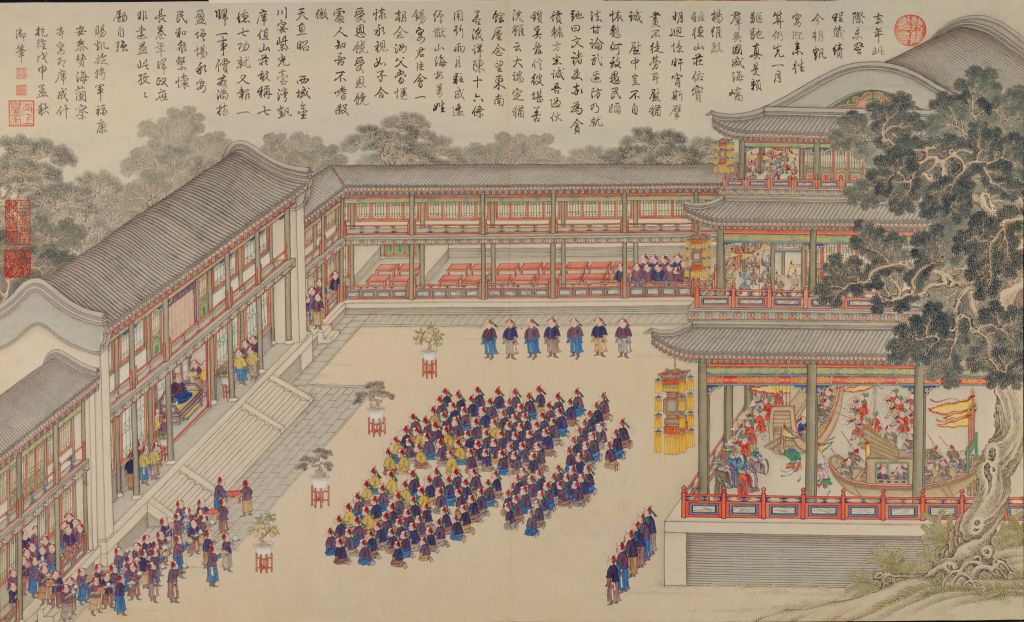 《平定台湾战图》册之《清音阁凯宴将士》