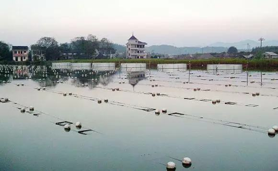 然而事实上我们在抵达小镇后,四面看了看,都没有看到湖,只是一个平常的南方的小镇。走进珠蚌基地首先看到的是一大片池塘,塘边养着猪、种着菜,养着鸭子,养着鸡。小哥介绍说,为了保证池内养分,养殖基地都会打造一个小型生态链空间——池塘边养猪是为了利用它们的粪便来饲养池内微生物,而池内微生物又正是珠蚌的主要口粮。另外塘内的珠蚌也并不生长在塘底,而是用网兜悬垂在水面下方,以保证充分的日照来让它们健康成长。