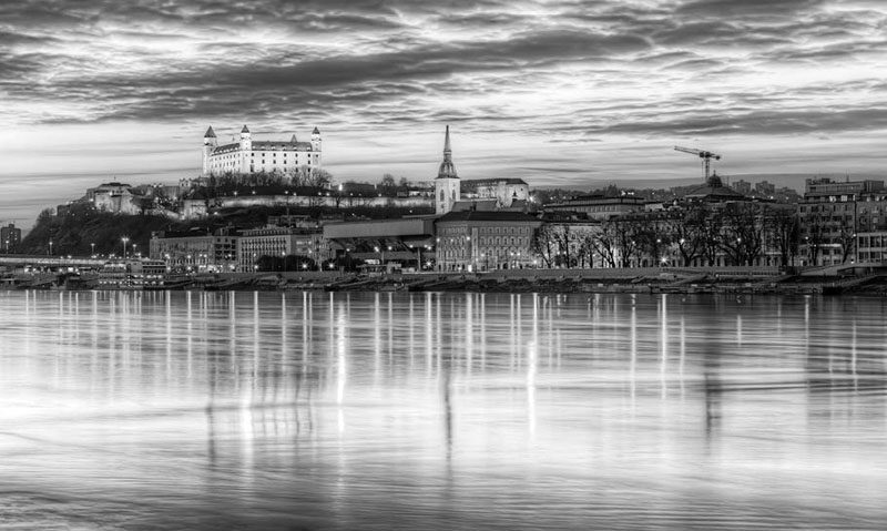 日落时分的布拉迪斯拉发城与多瑙河